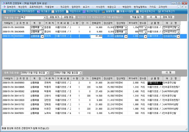 À¯¸®Æ® ÀåºÎ¿¡¼´Â ÀºÇà °Å·¡ ³»¿ªÀ» ÀÚµ¿À¸·Î ºÒ·¯¿Í¼ ȸ°è ÀåºÎ¸¦ ÀÚµ¿ »ý¼ºÇÏ´Â ±â´É°ú ¿Á¼Ç, Áö¸¶ÄÏ,11 ¹ø°¡, ÀÎÅÍÆÄÅ© µîÀÇ ¿ÀÇ ¸¶Äϰú »ç¾÷ÀåÀÇ ¼îÇθô¿¡¼ ´Ù¿î·ÎµåÇÑ ÆÇ¸Å ÀÚ·á ¿¢¼¿ ÆÄÀÏ¿¡¼ ÀڷḦ ÃßÃâÇÏ¿© ȸ°è ÀåºÎ¿Í Àç°í ÀåºÎ¸¦ ÀÚµ¿ »ý¼ºÇÏ´Â ±â´ÉÀ» °®Ãß°í ÀÖ½À´Ï´Ù.